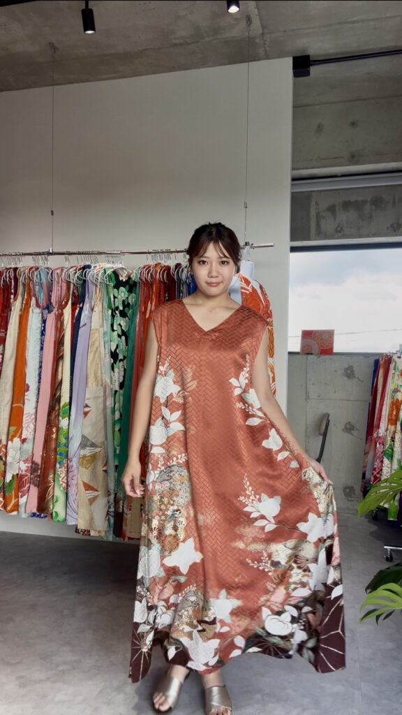 163cmでこの丈感で、Aラインワンピースとは違って、